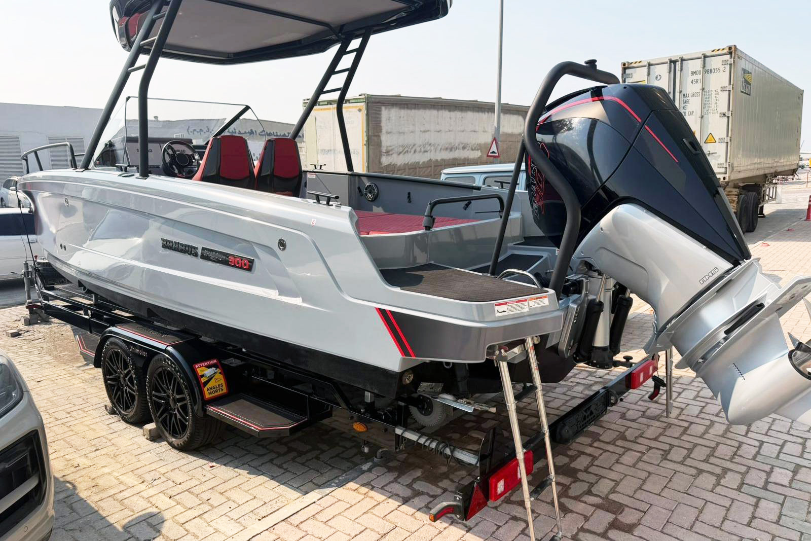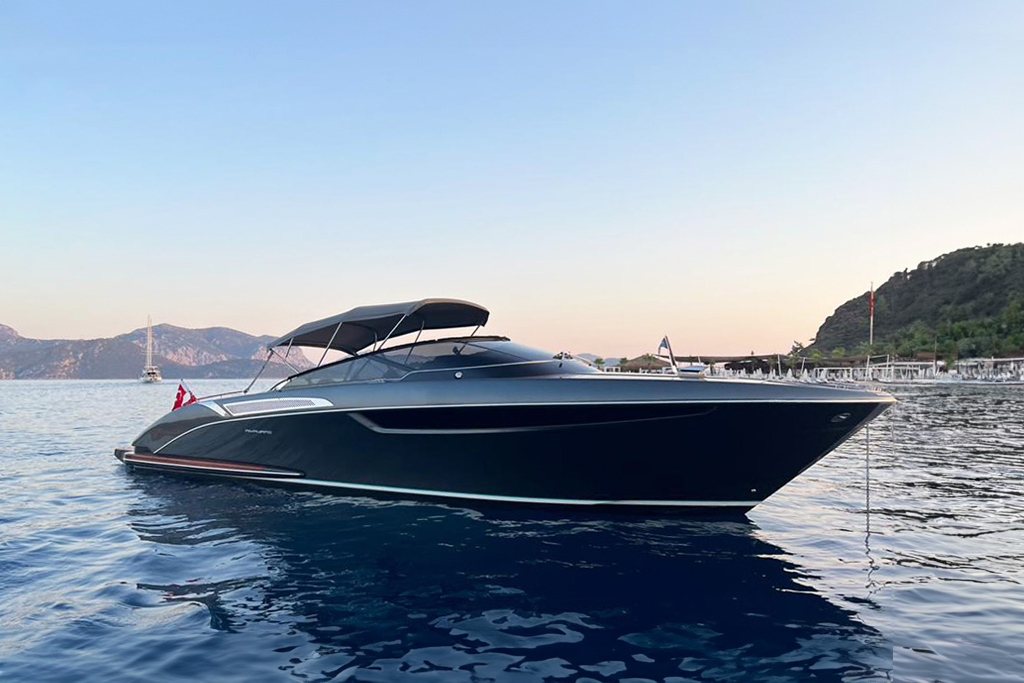 This ultra agile high-performer strikingly delivers BRABUS’ signature One-Second-Wow-Factor through its extravagant looks and multifunctional design, combining an unparalleled driving experience, next-level agility and easy handling like no other day boat in its size and class range. The BRABUS Shadow 300 Edition One is equipped with a Mercury 300RV8 racing engine and thus offers incredible power, able to reach mesmerizing speeds of over 50 knots without compromising stability, handling or agility.