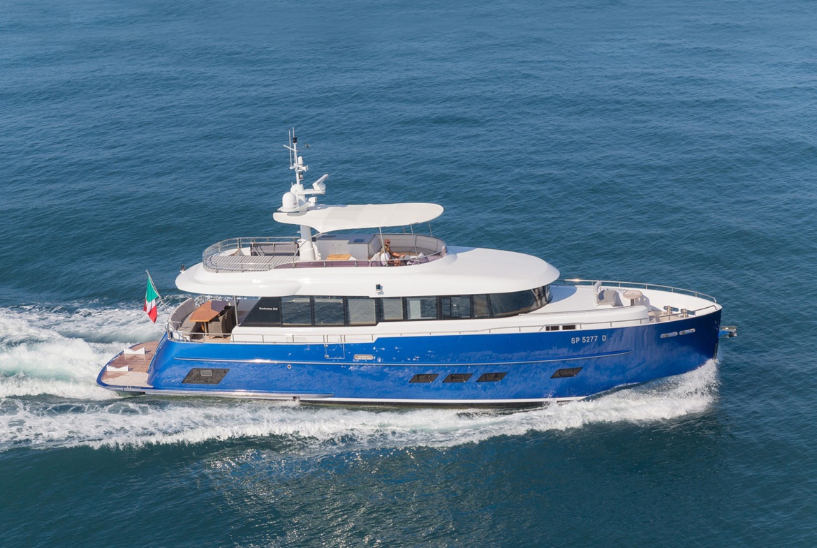 It ‘s the reference model of the Gamma Yachts line and is characterized by large spaces both indoors and outdoors and unusual solutions for a yacht of this size; developed over two decks and available in three-or four cabins. On the main deck there is a large living room connected to the cockpit, the wheelhouse completely separated which allows an unparalleled level of privacy during long cruising.